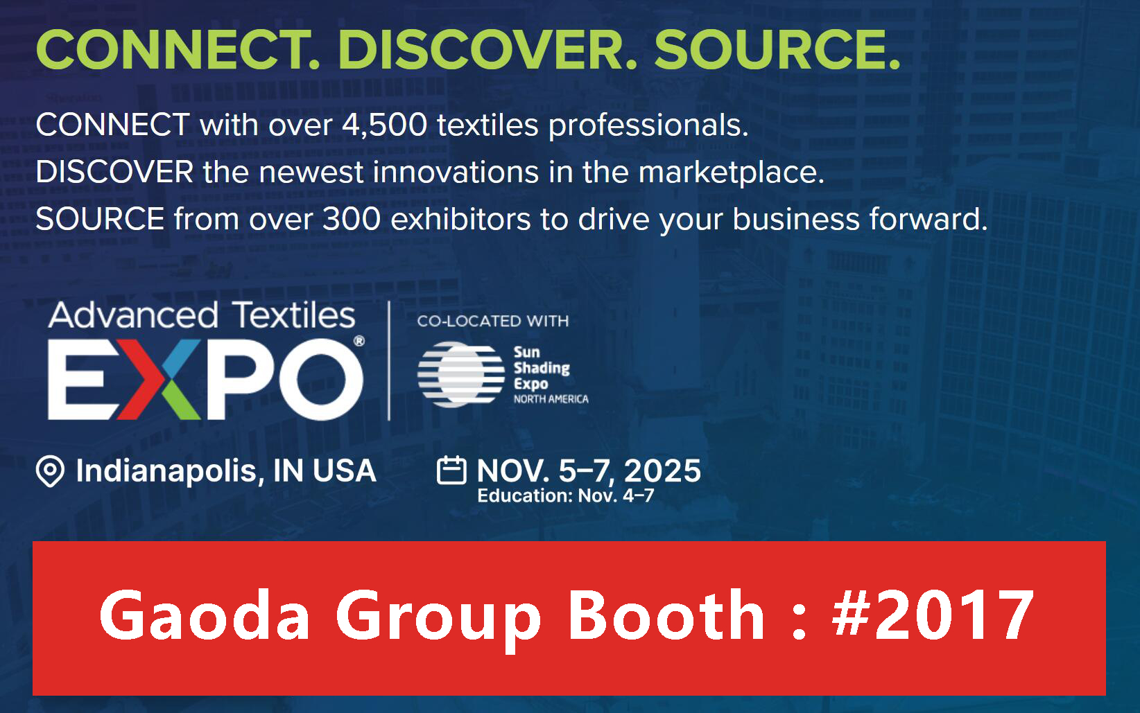 गाओडा समूहले नोभेम्बर ०५ देखि नोभेम्बर ०७ सम्म इन्डियानापोलिस, IN मा आयोजना हुने एटी एक्सपो २०२५ प्रदर्शनीमा भाग लिनेछ। उच्च प्रदर्शन औद्योगिक कपडाहरूको एक विश्व अग्रणी निर्माताको रूपमा, गाओडा समूहले PVC चक्कु कोटिंग सामग्री, जाल सामग्री, उच्च-कार्यक्षमता वार्प बुनाई औद्योगिक कपडाहरू, र वातावरण मैत्री रिसाइकल वास्तविक छाला उत्पादनहरूको पूर्ण दायरा देखाउनेछ।